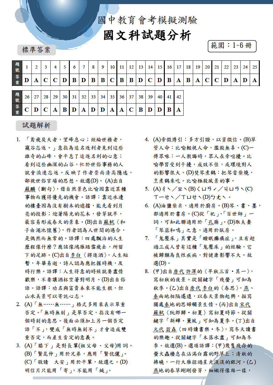題目不與現有市售資源相同,題量、知識點、難易度仿照會考。