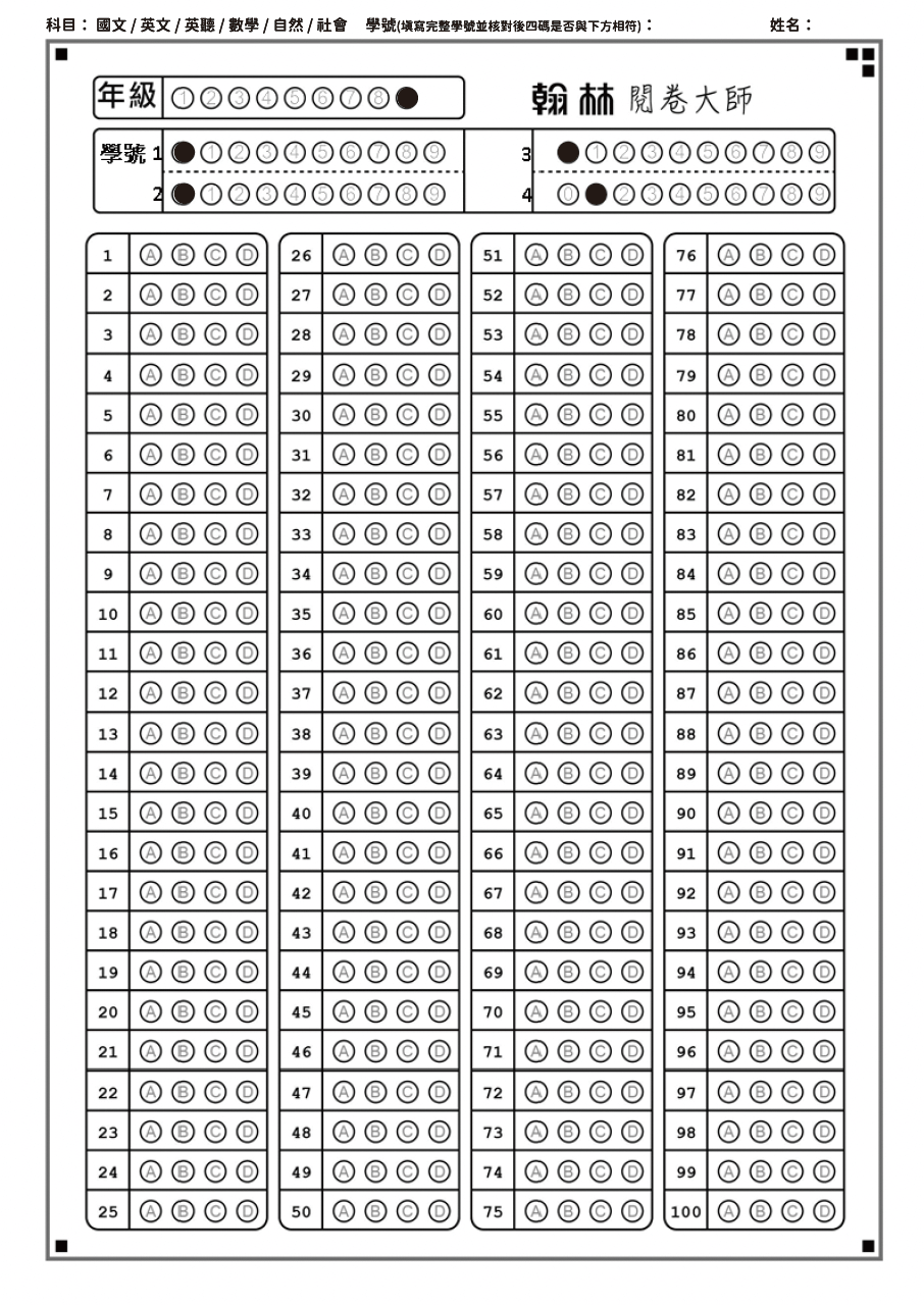 仿實際會考畫卡填答方式進行考試,在大考前同步畫卡練習。